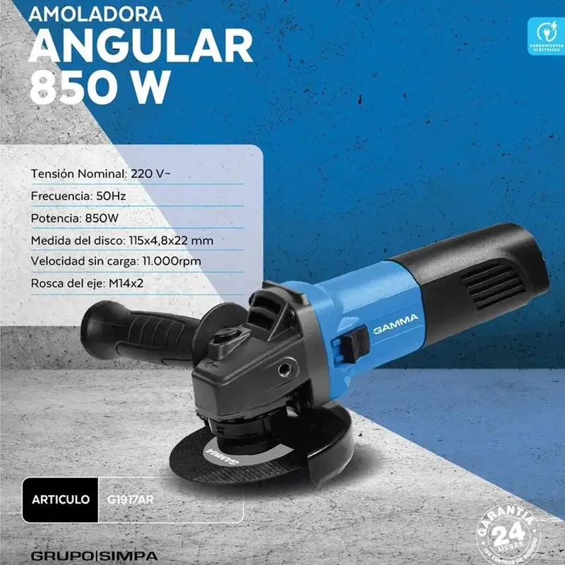 AMOLADORA ANGULAR 850W 4 1/2”. GAMMA