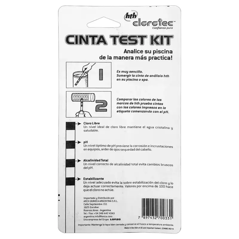 CINTA TEST KIT PARA PILETAS – MARCA HTH CLOROTEC