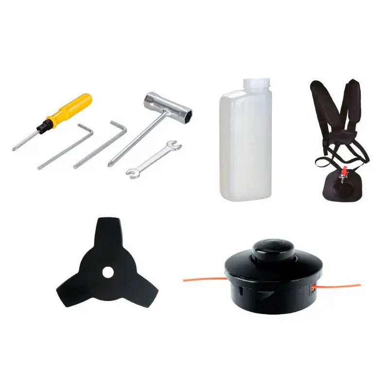 - Accesorios incluidos: Cuchilla 3T – Cabezal para tanza nylon – Cinturon/correa – Kit de herramientas