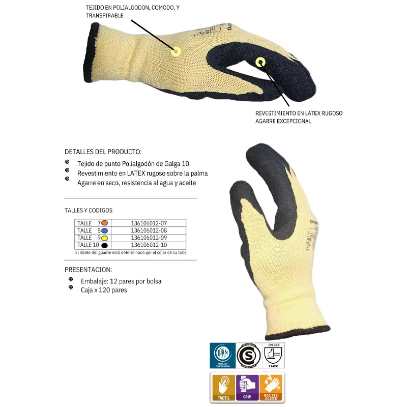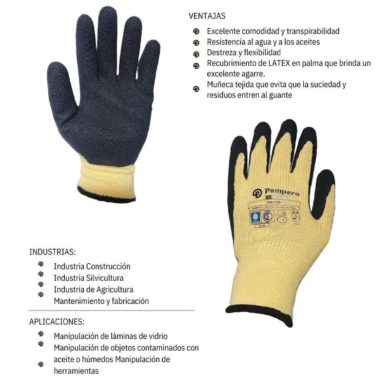 GUANTE TRACTOR ALG./POL EMBEBIDO LATEX RUGOSO XXX. PAMPERO