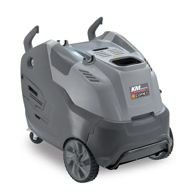 La hidrolavadora Comet KM EXTRA 8.16 16/200 T es ideal para aplicaciones de limpieza profesional intensiva, con un diseño robusto y avanzado que incluye una bomba triplex con pistones cerámicos y tapa de bronce. Su tanque de gasoil de 18 litros con flotante y filtro de llenado permite largas jornadas de trabajo sin interrupciones, mientras que el sistema de aspiración de detergente en alta presión, con caudal regulable, facilita la conexión a un tanque externo para aplicaciones especializadas. Con un dispositivo anti-sarro integrado y una cisterna de 2.5 L, el equipo está protegido contra depósitos minerales, lo que aumenta su durabilidad y rendimiento. El motor trifásico de 1400 RPM, junto con la válvula de regulación profesional, asegura una operación continua y estable. Además, el sistema electrónico PID de control de temperatura y la función de funcionamiento a vapor brindan una limpieza profunda y segura, con una caldera protegida por un encendido temporizado y un quemador controlado por caudalímetro. La Comet KM EXTRA 8.16 16/200 T es una herramienta fiable para quienes necesitan una limpieza profesional y eficiente.