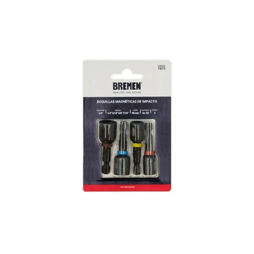 - Las Boquillas Magnéticas de Impacto BREMEN® cuentan con un potente imán que permite un agarre seguro y son ideales para usar con atornillador de impacto, taladro o destornillador.