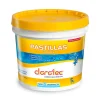 Cloro en pastillas de disolución lenta que actúa como desinfectante. Contiene 5 pastillas de 200g cada una. Se colocan en la boya o en el skimmer de la piscina para una disolución pareja y prolongada. Apto para todo tipo de piletas.