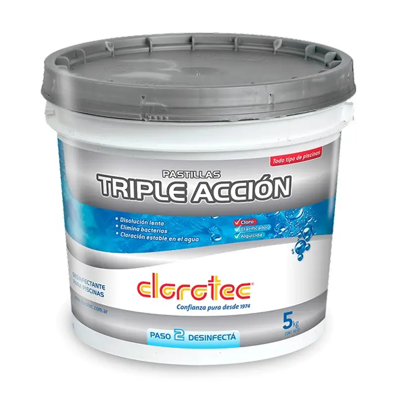 Cloro, alguicida y clarificador en una sola pastilla de 200g. Se colocan en la boya o en el skimmer de la piscina para una disolución pareja y prolongada. Apto para todo tipo de piletas.